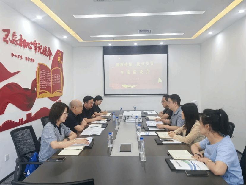 为加强集团内兄弟单位业务合作,推动文化产业与金融投资深度融合,7月1日,陕核传媒执行董事白冰一行到陕核投资开展座谈交流。双方围绕"深化产融协同、赋能文化创新"主题展开深入交流,共同探索"文化+金融"创新发展模式。陕核投资支委委员、总经理郭可超,陕核传媒总经理卢峰,陕核投资支委委员、副总经理、工会主席刘新宇参加会议。