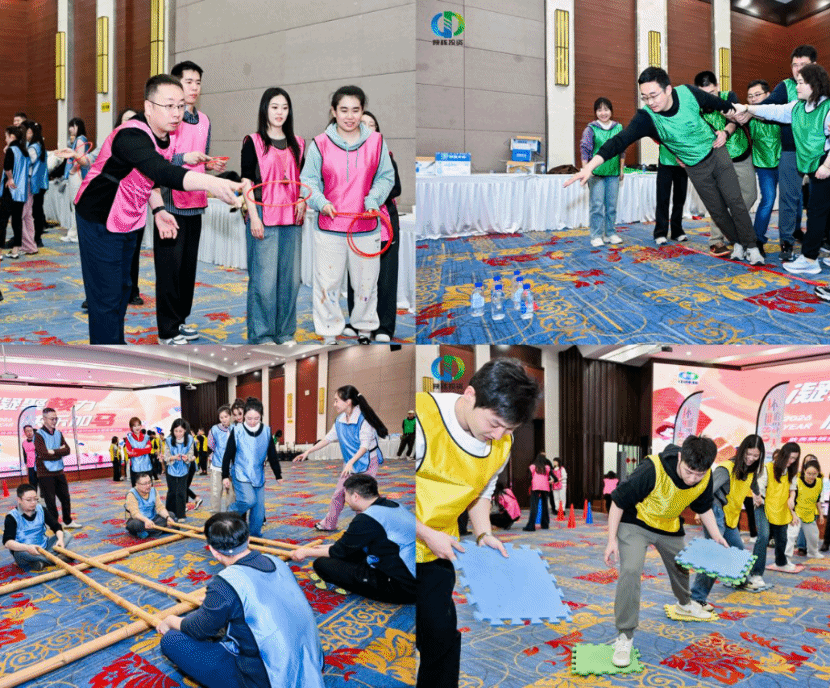 本次团建的核心环节是《环游世界80天》主题项目。各支队伍手持“护照”,依照指定路线,依次前往“中国”、“巴西”、“冰岛”、“俄罗斯”、“美国”、“德国”、“法国”、“意大利”等八个“国家”完成挑战。在“中国”,队员们跳起节奏明快的竹竿舞,考验节奏与默契;在“巴西”,化身足球健将,接力绕桩射门,比拼速度与精准;在“冰岛”,利用有限的“浮冰”抢渡冰河,凸显资源规划与团队信任;在“俄罗斯”,挑战经典套圈游戏,展现耐心与技巧;在“美国”,蒙眼投篮项目考验了同伴间的指挥与绝对信任;在“德国”,需巧妙利用绳索合力取出“啤酒”,聚焦策略与协作;在“法国”,共同操控绳索搭建“埃菲尔铁塔”,锤炼精细操作与全局观;在“意大利”,破解“达芬奇密码”,则需要高效的沟通与记忆接力。